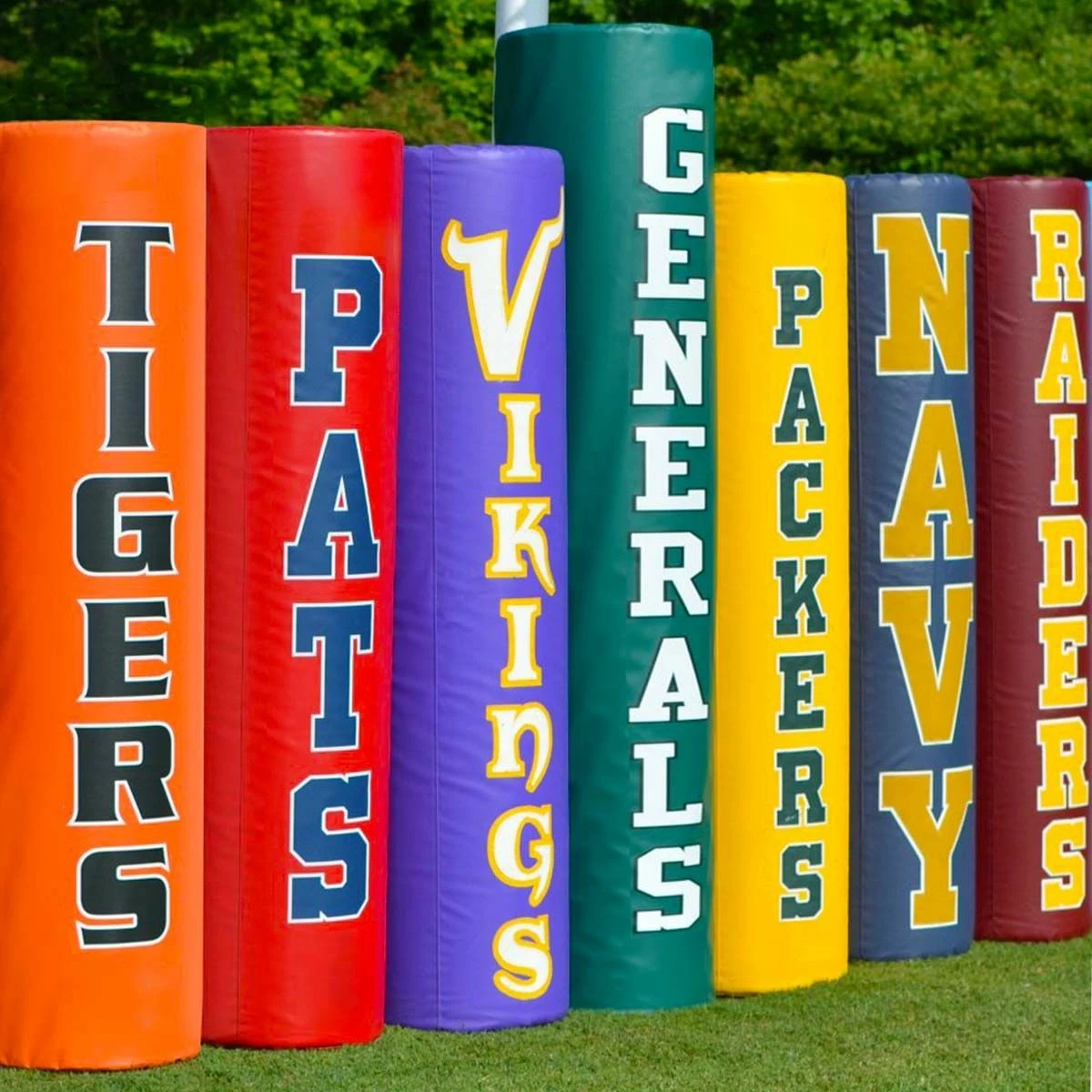 This 2-color goal post lettering is computer cut and sewn-on for long lasting durability. It will not scrape off or peel and will last for years with proper care. Order this lettering with any Fisher post pads. Athletic block font is standard but other fonts are available – contact Anthem Sports.