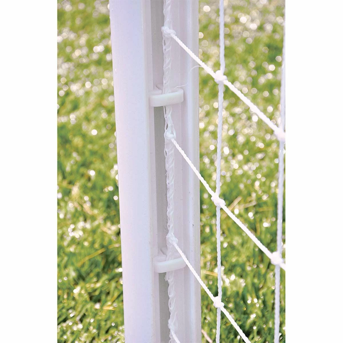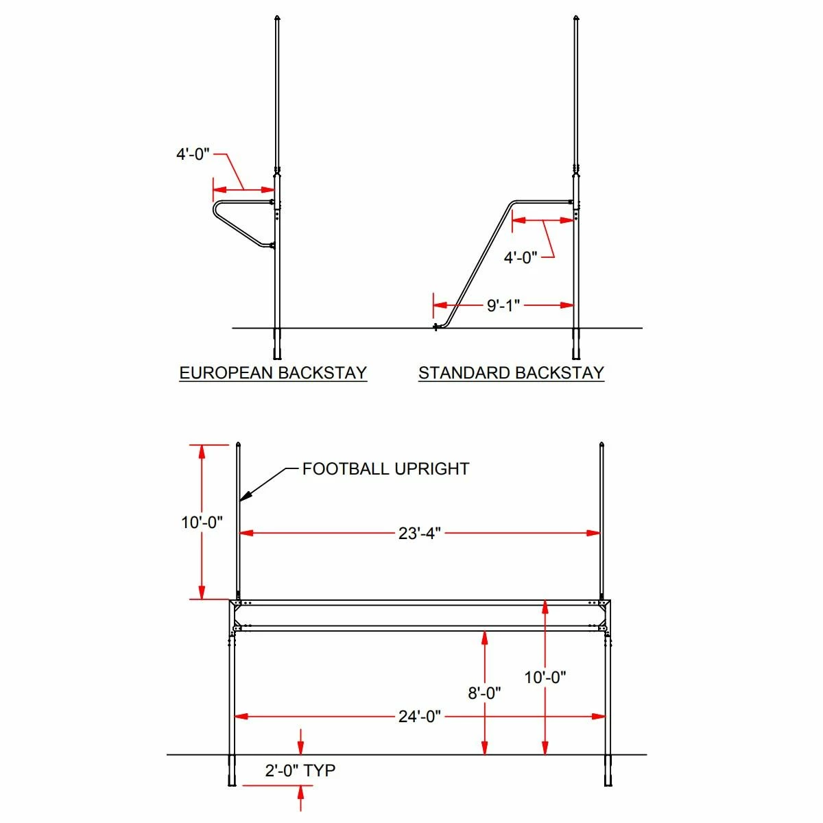 The Jaypro 8’ x 24’ Deluxe Official soccer/football combo goals are ideal for multi-purpose facilities where soccer and football events take place. Constructed out of aluminum and finished with a white powder coat, these goals are sturdy and made to last in all weather conditions. Available with either standard or European backstays, these goals are easy to install whether they are serving as a permanent or semi-permanent solution. The Easy Track™ flush mount net attachment system comes with clips to ensure the net is properly secured all the way around the frame and won’t leave any protrusions. Aluminum ground sleeves and net are sold separately. See “Additional Info” tab for installation instructions and specifications/drawing.