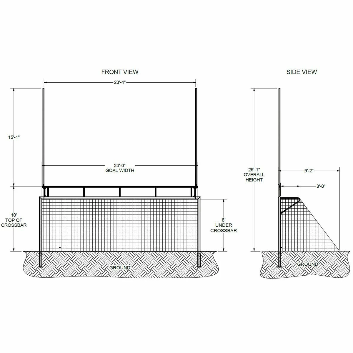 - Official football goal: 15’-1” H x 23’-4” W