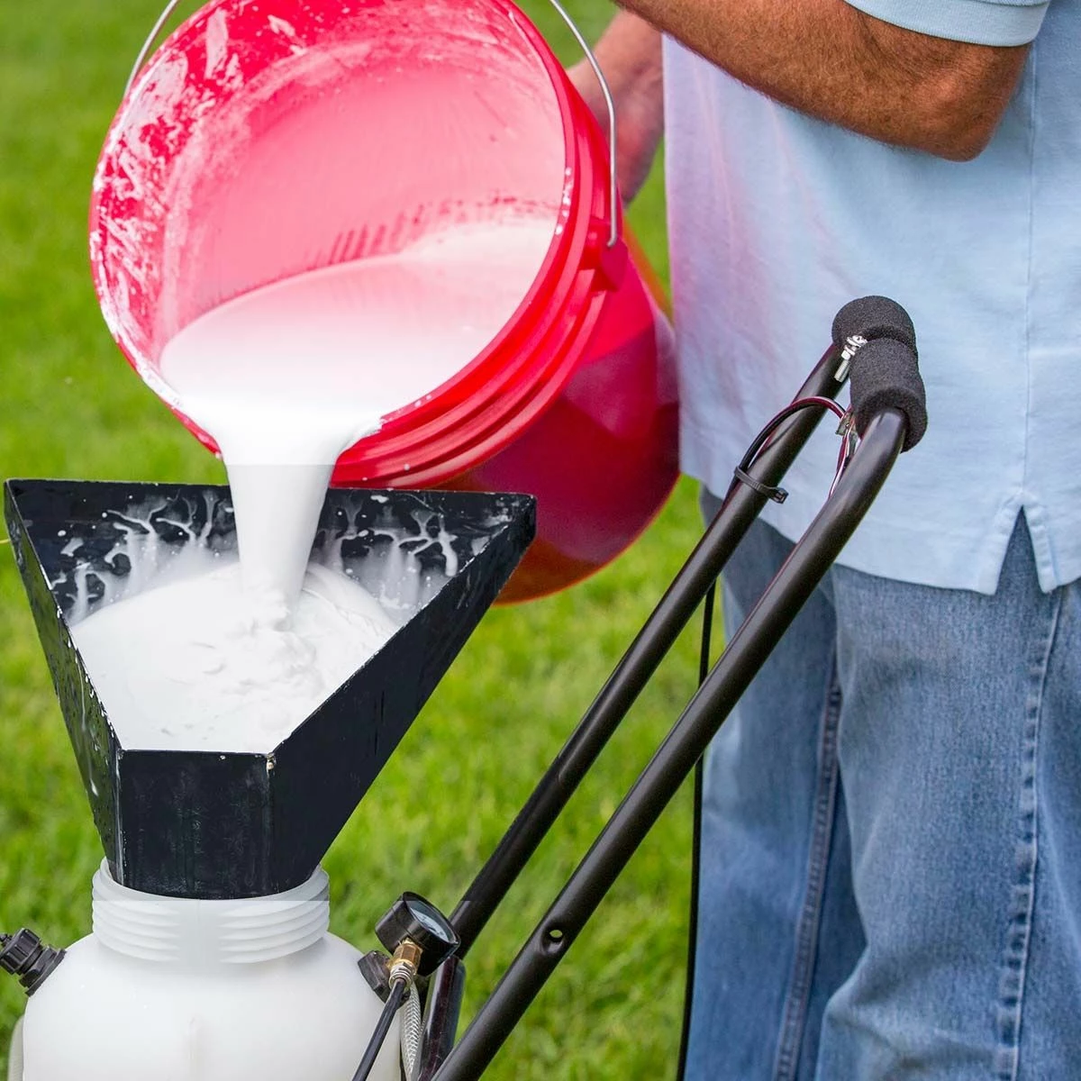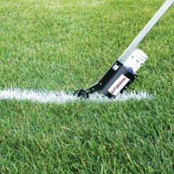 The FieldLiner 3 paint marker from Newstripe features a 3-gallon tank that produces top-quality lines with an economical field paint sprayer. The lines are adjustable from 2″W to 6″ W, have much better quality, and last much longer than aerosol sprays. This field liner has four 10-inch flat-free wheels, a full loop handle, and a hand control lever making it easy to operate. The handle folds easily to transport and store wherever you need. An 18-month limited warranty has the longest available warranty.