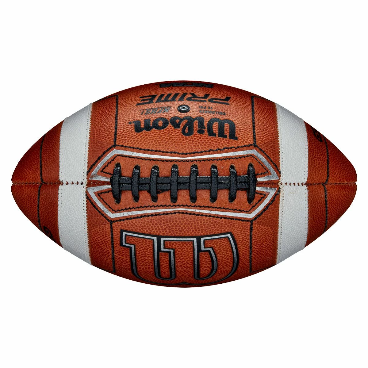 The Wilson GST Prime NCAA official leather game football is an excellent ball approved for NFHS and NCAA play. Featuring index and middle finger stitching, this football provides QBs with better feel and “flick” when releasing and more ball security while handling/throwing. Patented sewn-on stripes are made of composite material instead of paint, providing 82% more grip for more accurate throws. Wilson’s Light Leather Formula is the softest football leather on the market, making a unique feel that’s easier for your fingers to sink into for more control. Accurate Control Lacing (ACL), which is pebbled instead of smooth, provides QBs with 174% more grip in all conditions.